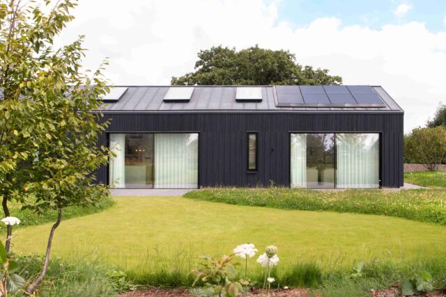 The design-led development is comprised of carbon net zero, highly-sustainable eco homes, designed to meet the RIBA’s Climate Challenge criteria. The houses are clad in a striking charred larch treatment and come complete with a range of energy-efficient features, such as air source heat pumps, solar photovoltaic panels, extensive insulation, MVHR systems and electric car charging points.