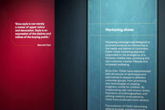 Nissen Richards Studio created the permanent exhibition and graphic design, branding, wayfinding and shop design for Shoemakers Museum, a brand-new visitor destination in the heart of Somerset. The practice was also the museum’s interpretation specialist, creating the text for the exhibition’s content, in close collaboration with the curatorial team. The museum was created to celebrate 200 years of shoemaking by Clarks and is located in Street, the village where the company was first formed.