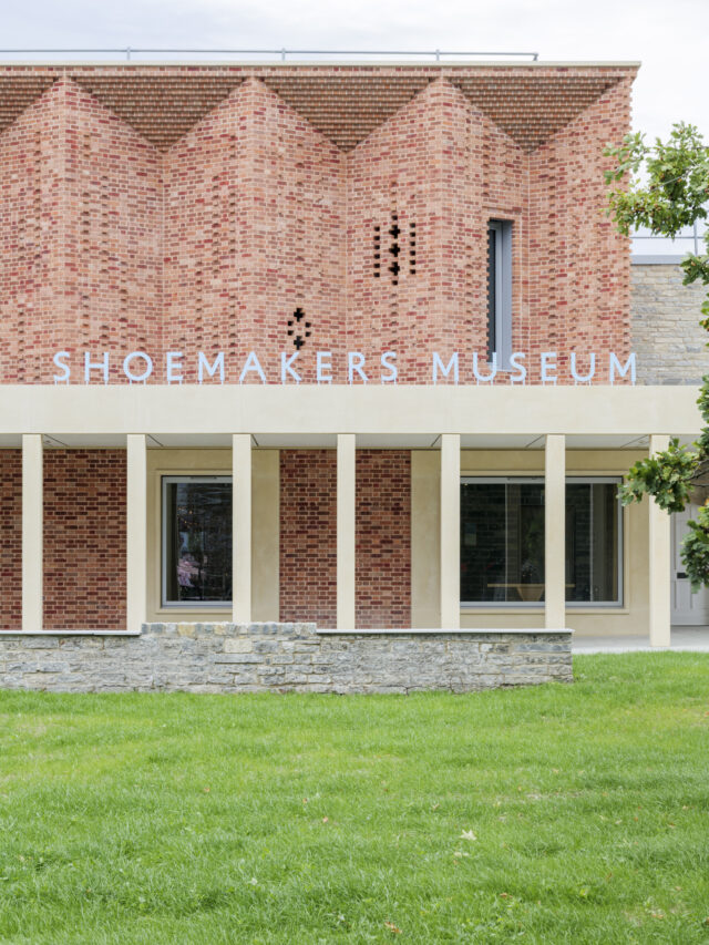 Designed by Purcell Architects, the new museum building is rooted in place through locally quarried stone and enriched with playful references to Clarks’ design language. It includes a striking double-height contemporary extension which houses the museum and is connected to The Grange, a Grade II listed 16th-century manor house long associated with shoemaking.